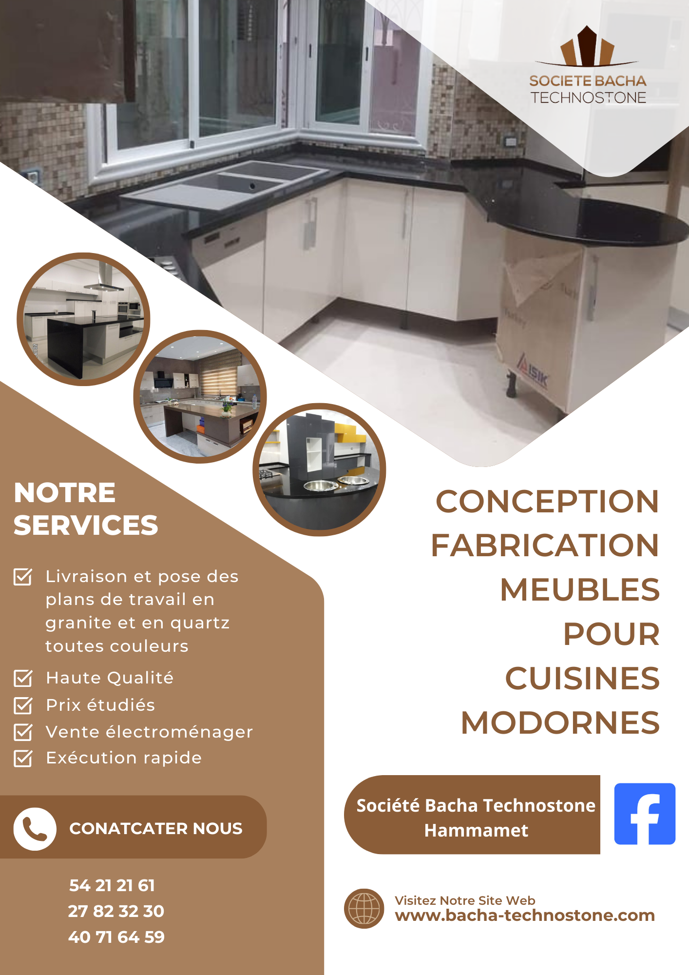 Société Bacha Technostone est un des leaders dans le domaine de fabrication des plans de travail pour cuisines et salle de bains en quartz et granite.